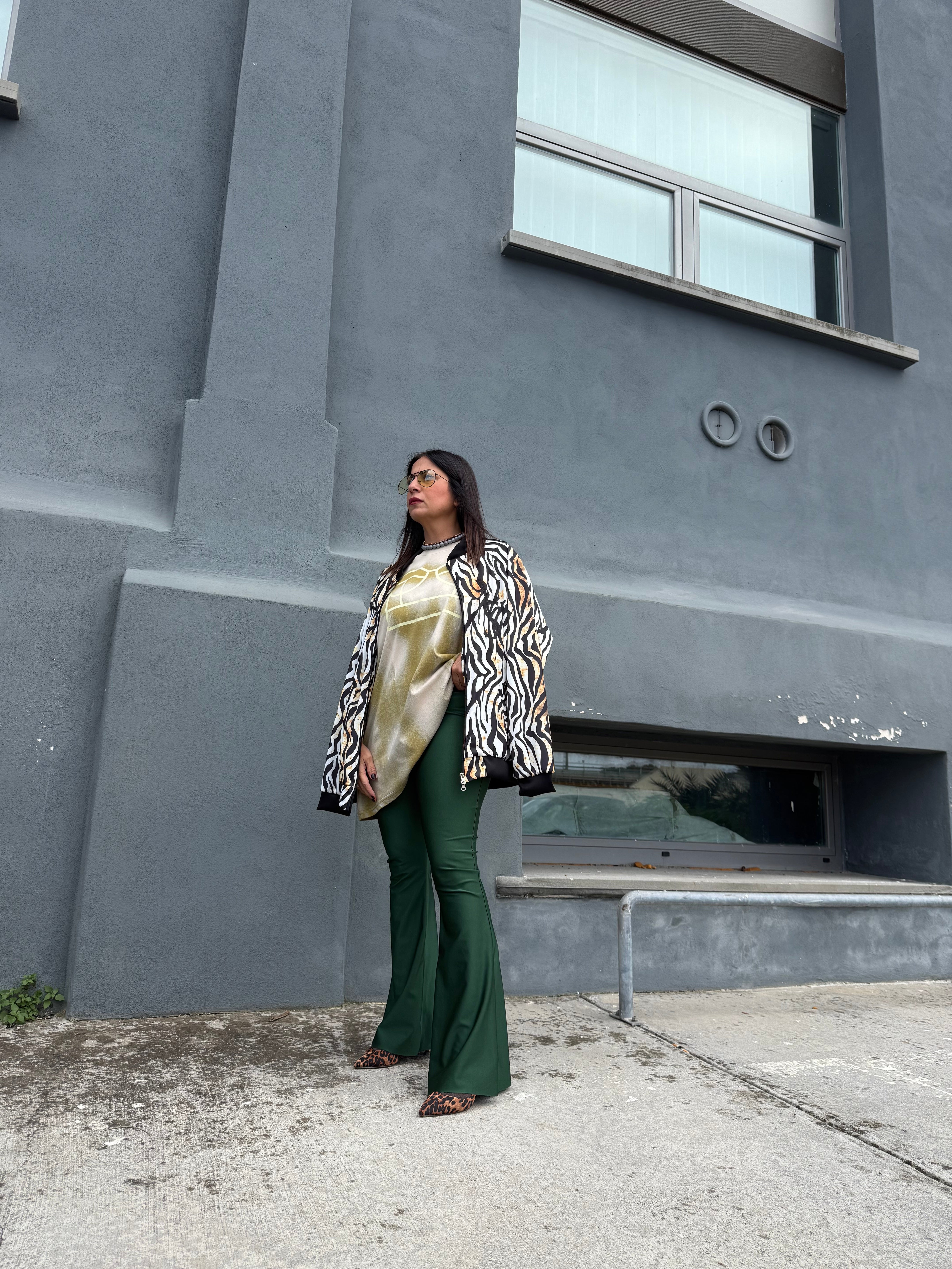 La vestibilità oversize dona al capo un tocco contemporaneo e disinvolto, perfetto per completare look casual ma d’impatto.
