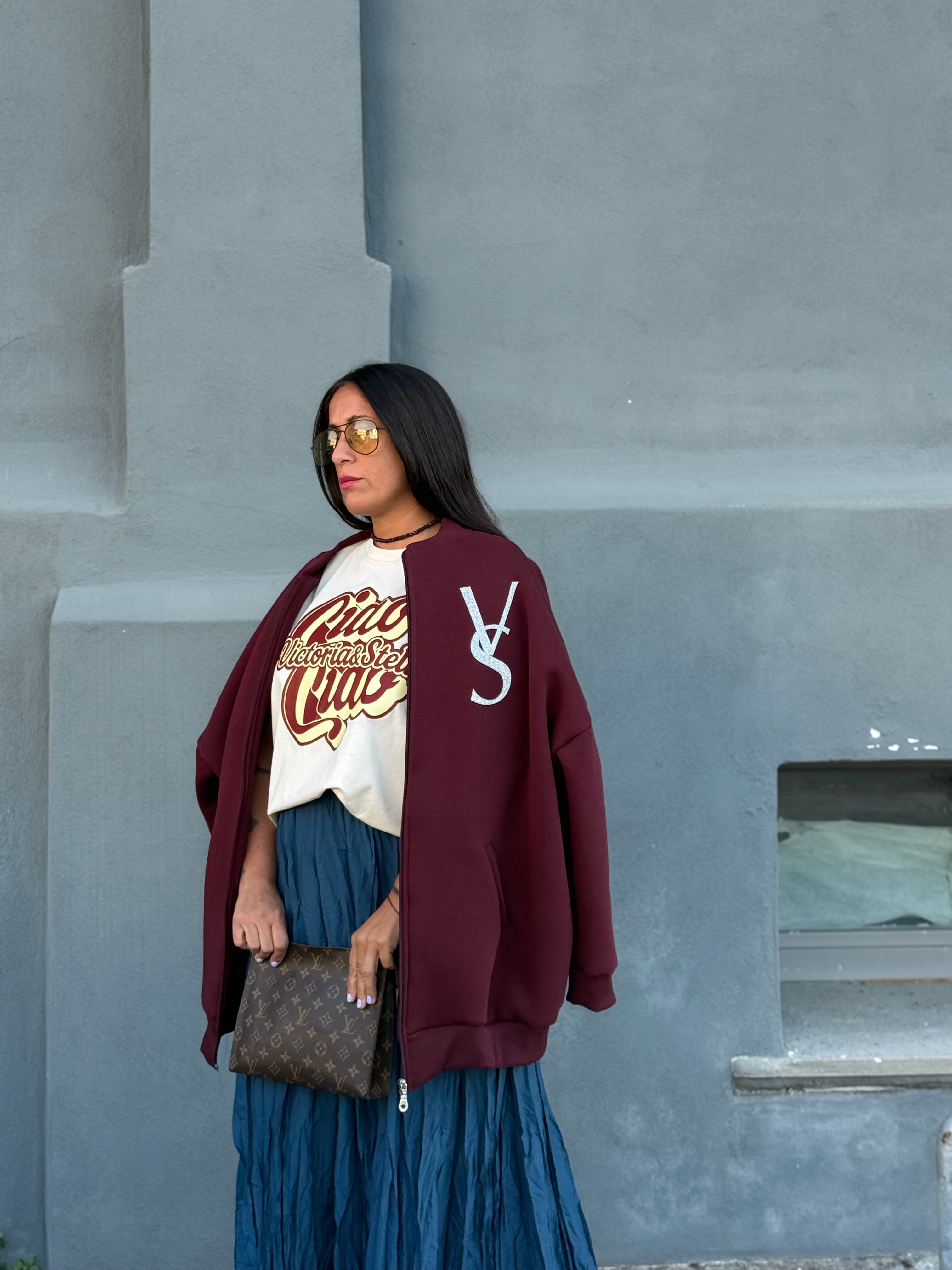 Bomber in cotone felpato, morbido e avvolgente, perfetto per dare un tocco cool ai look di ogni giorno. La stampa frontale con logo in glitter illumina il capo con un dettaglio brillante e deciso.