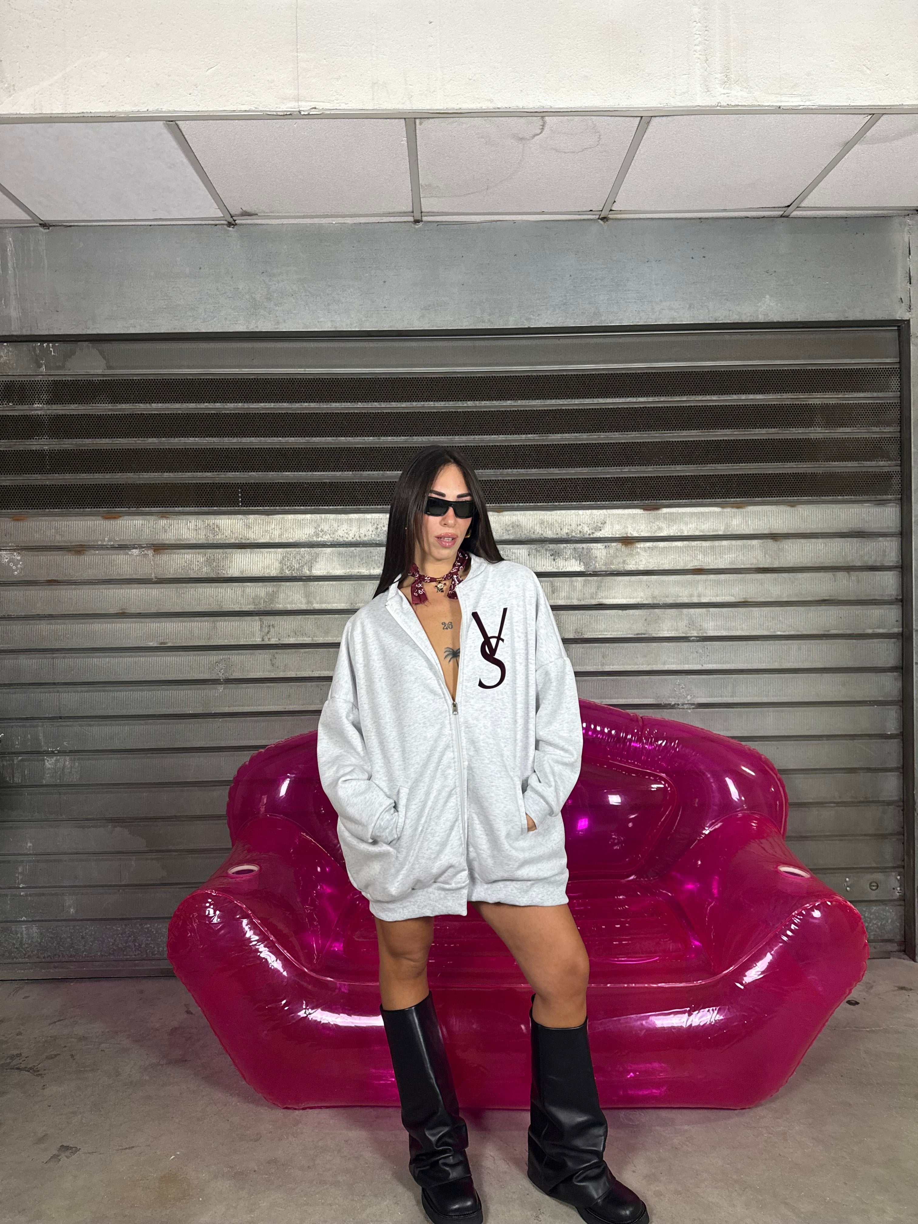 Bomber in cotone, felpato all’interno con zip lampo e stampa frontale in glitter