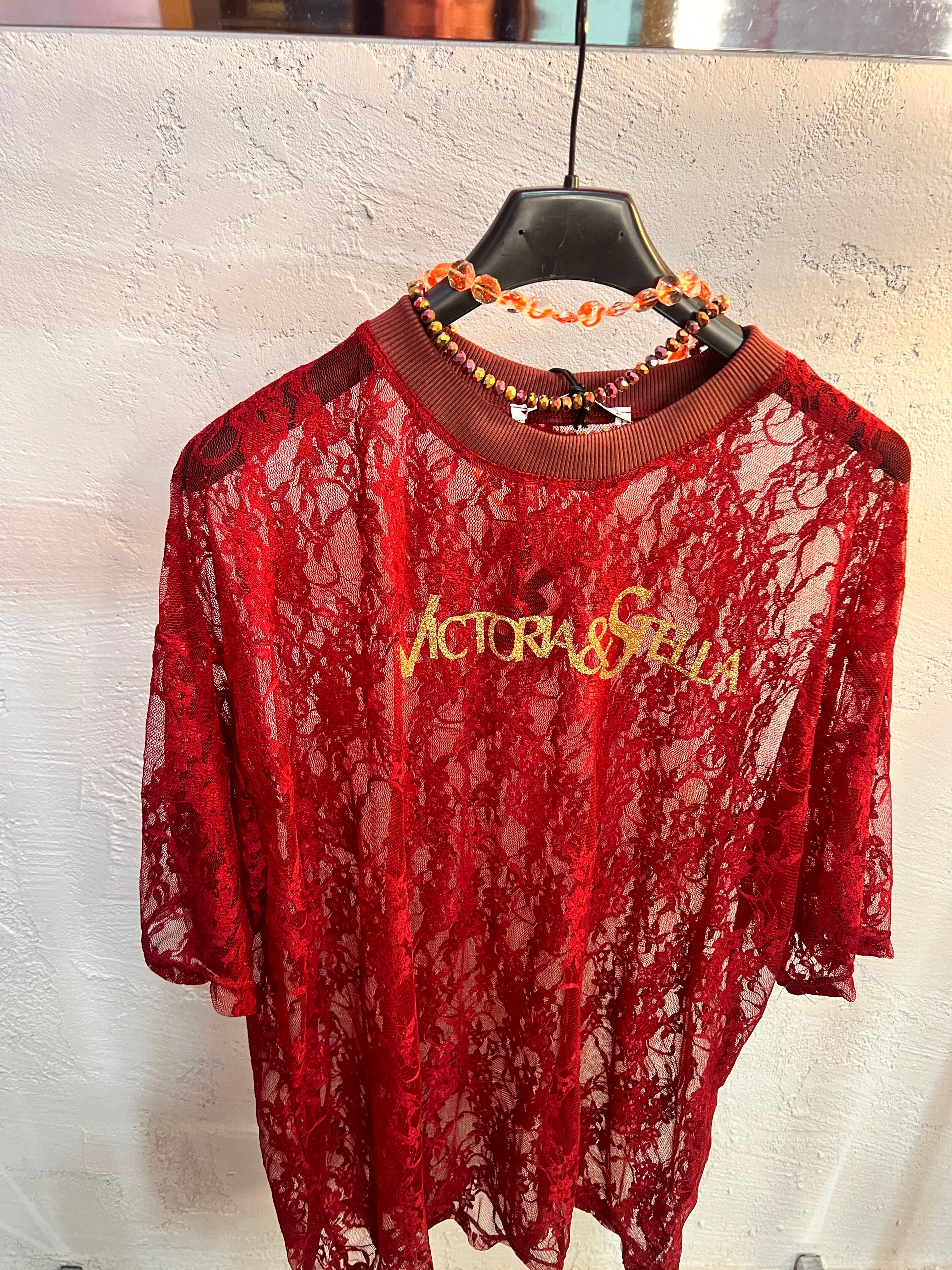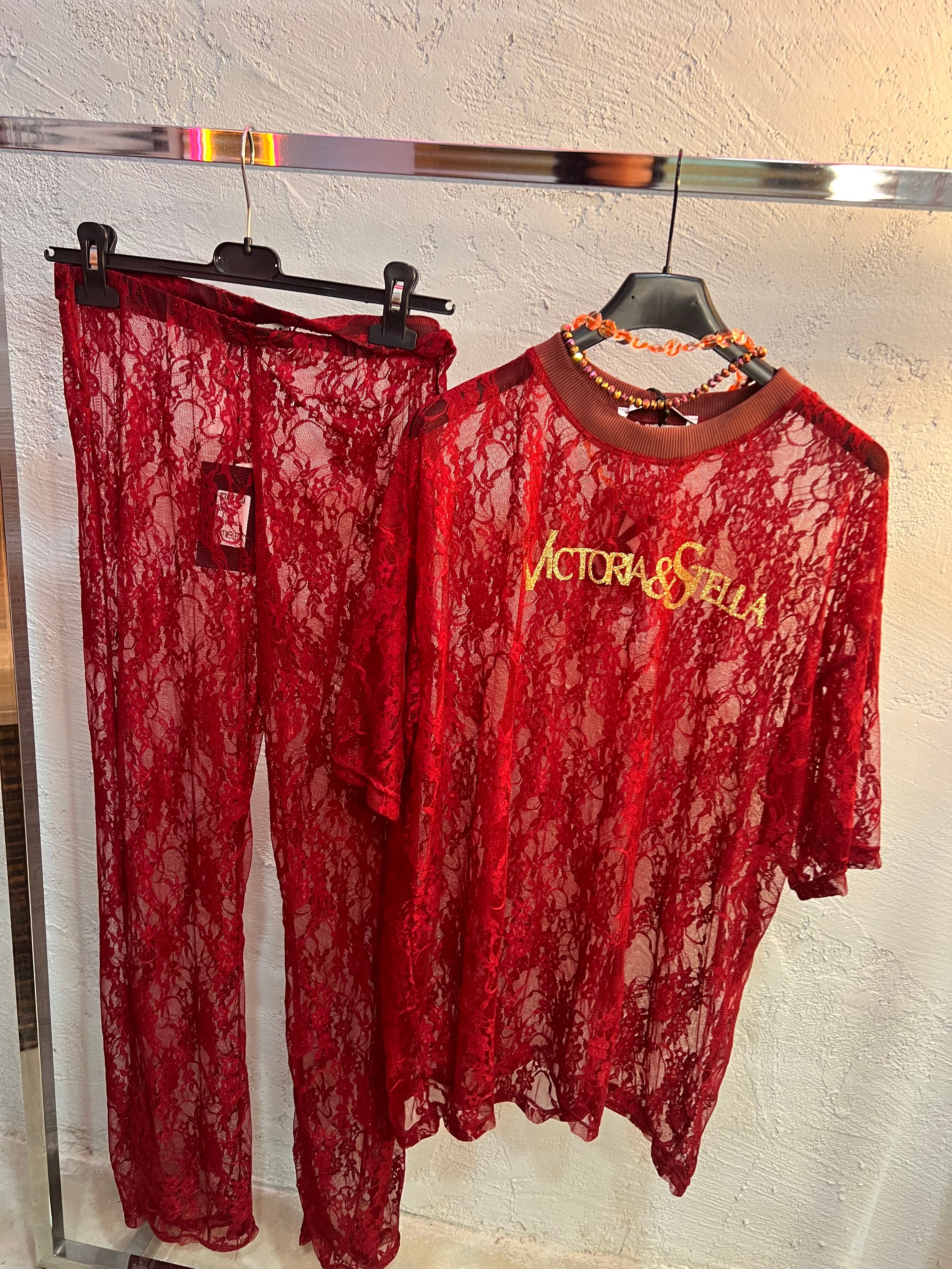Coordinato composto da t-shirt over e pantalone trasparente in pizzo oppure abbinato a una gonna lunga con sottogonna integrata.