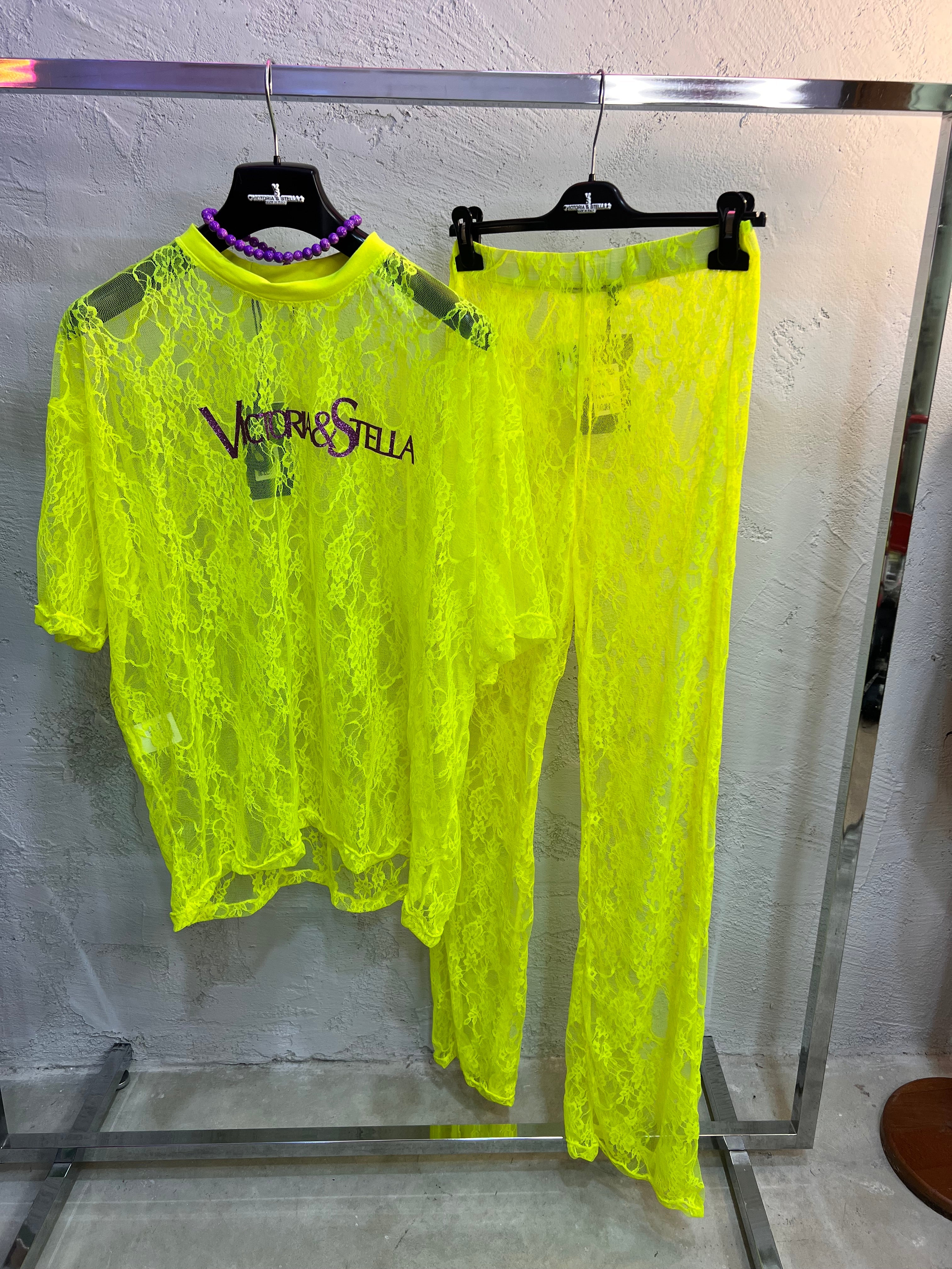 Coordinato in Pizzo Giallo Fluo