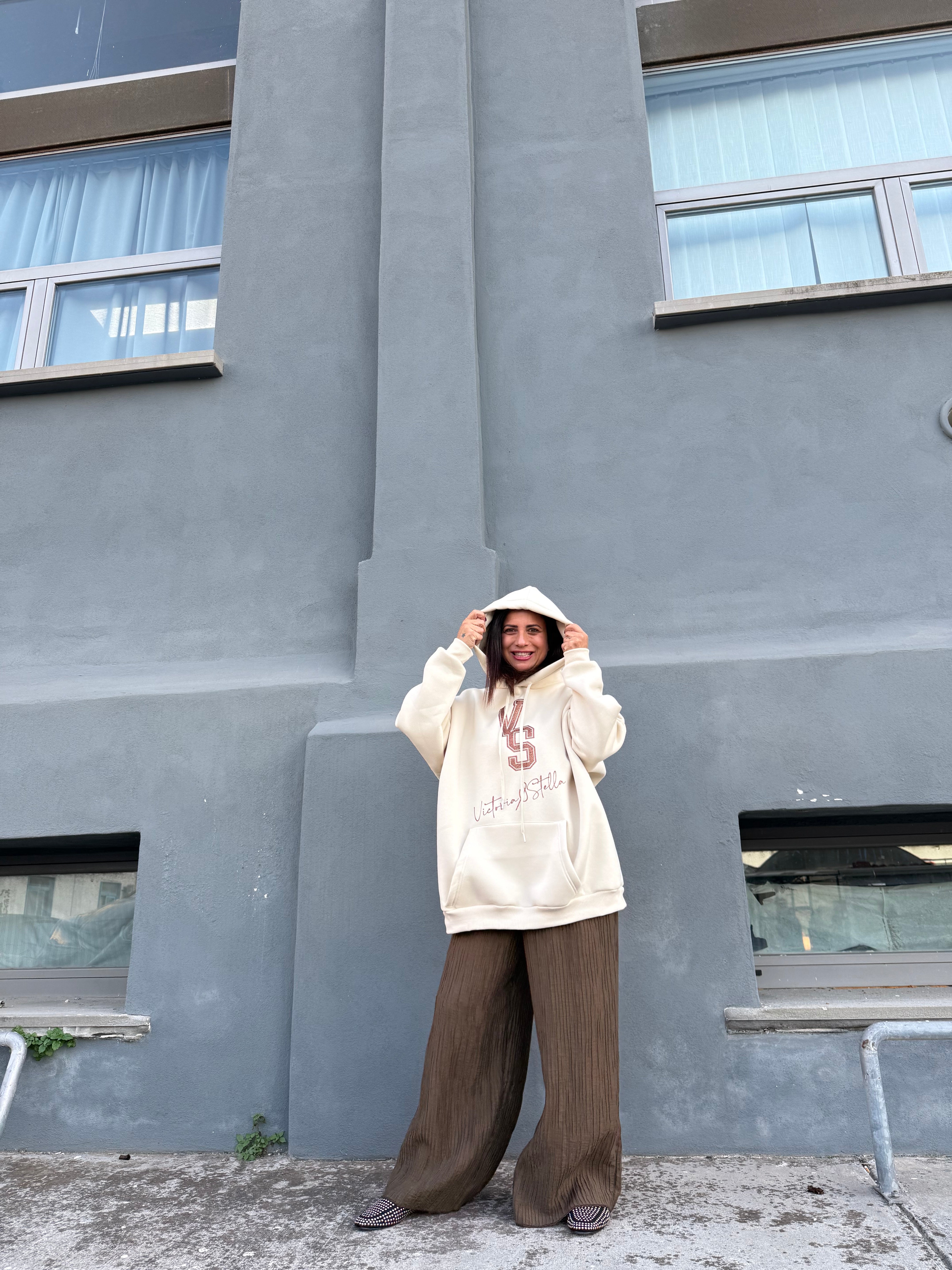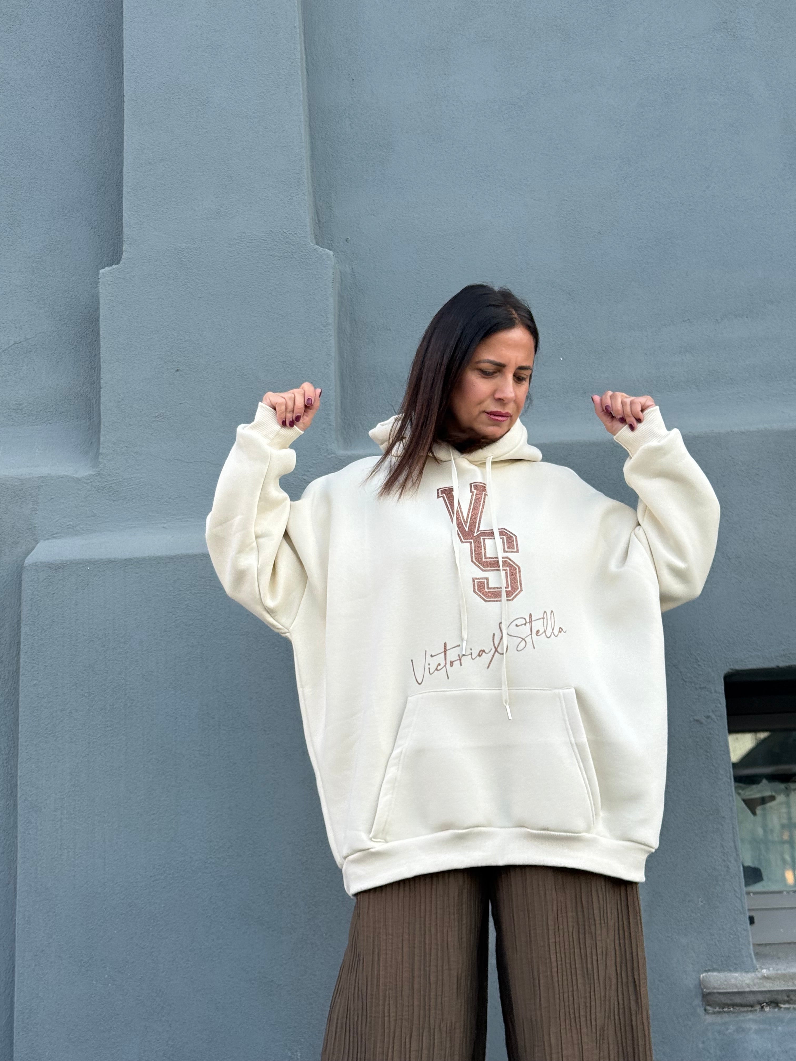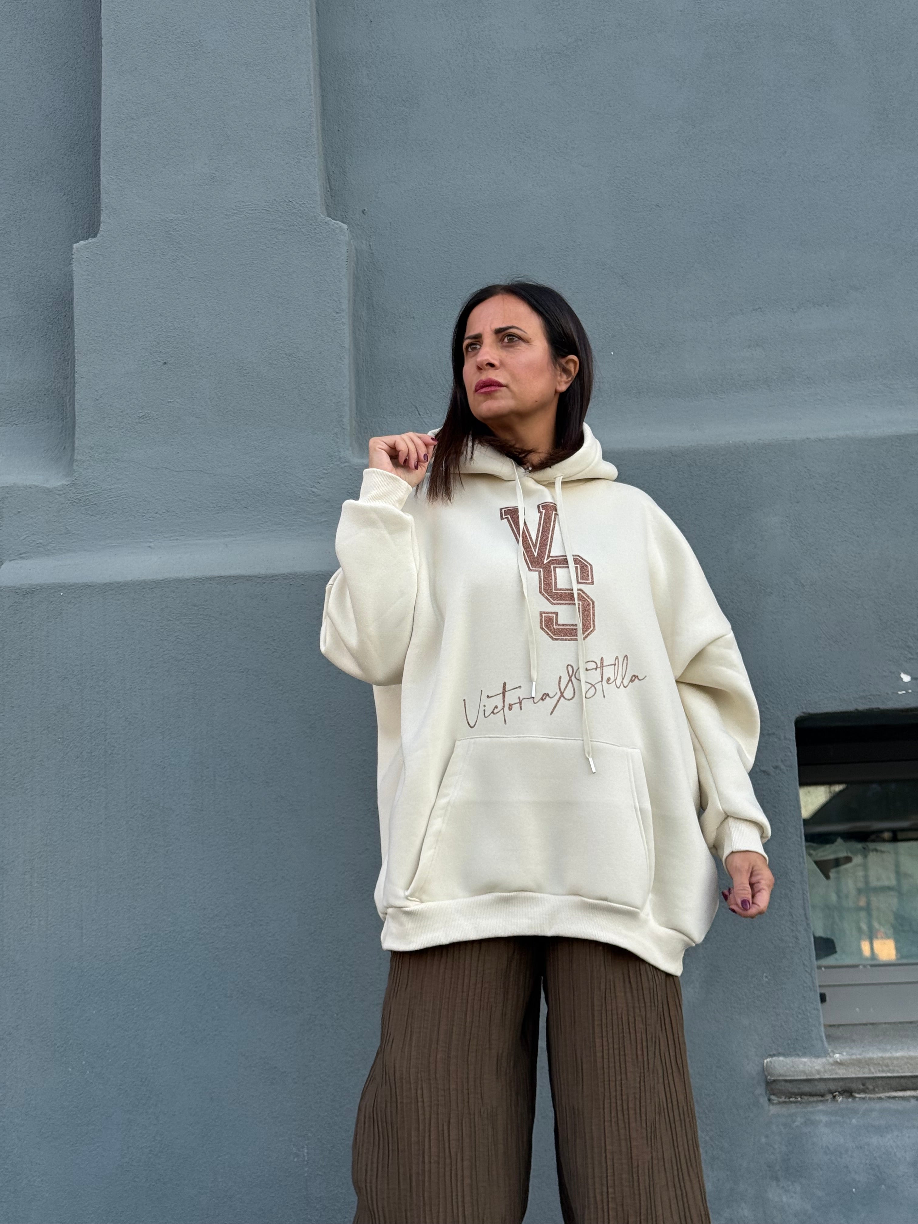 Felpa over in caldo, cotone super felpata all’interno con Stampa frontale, cappuccio