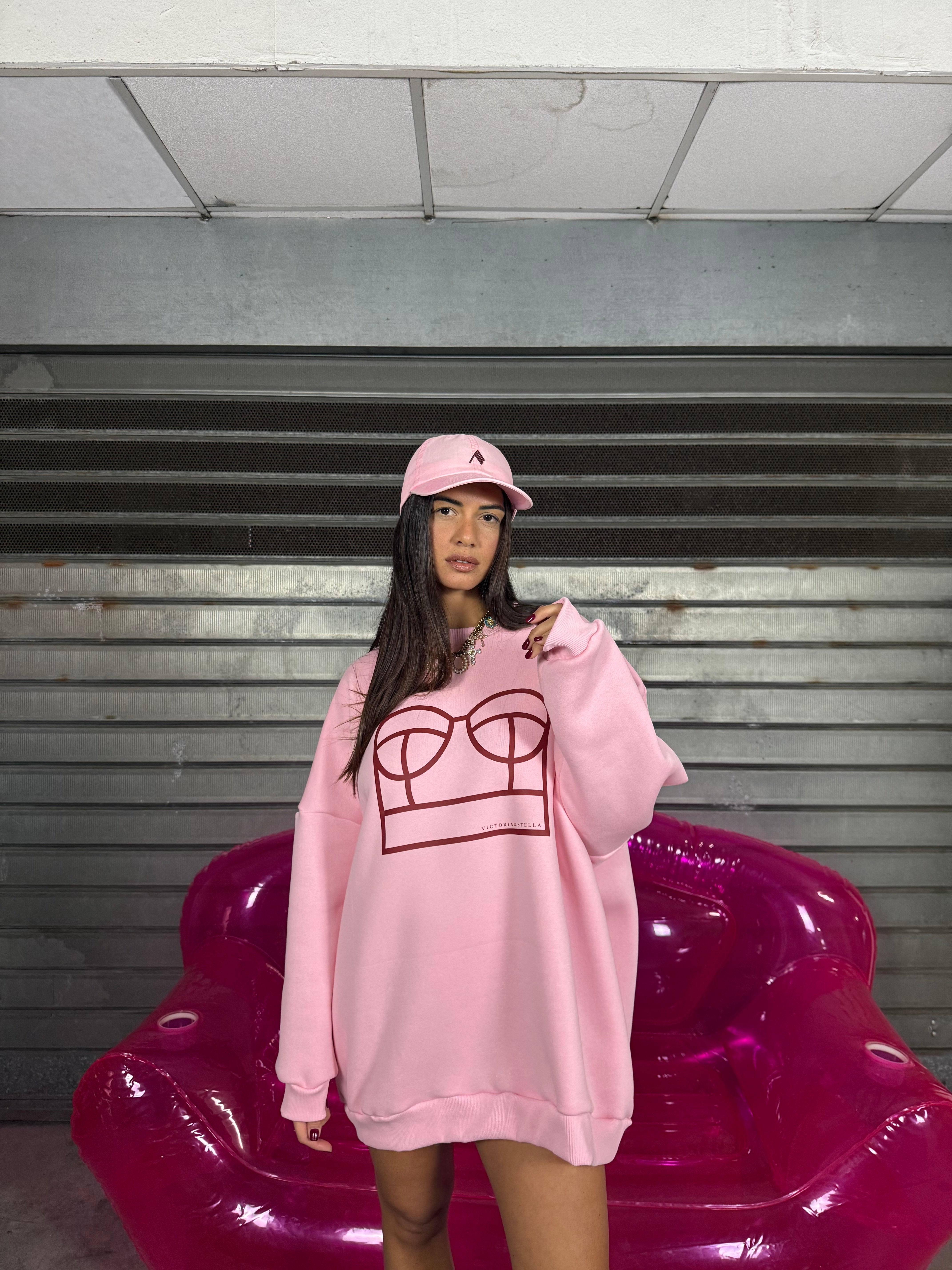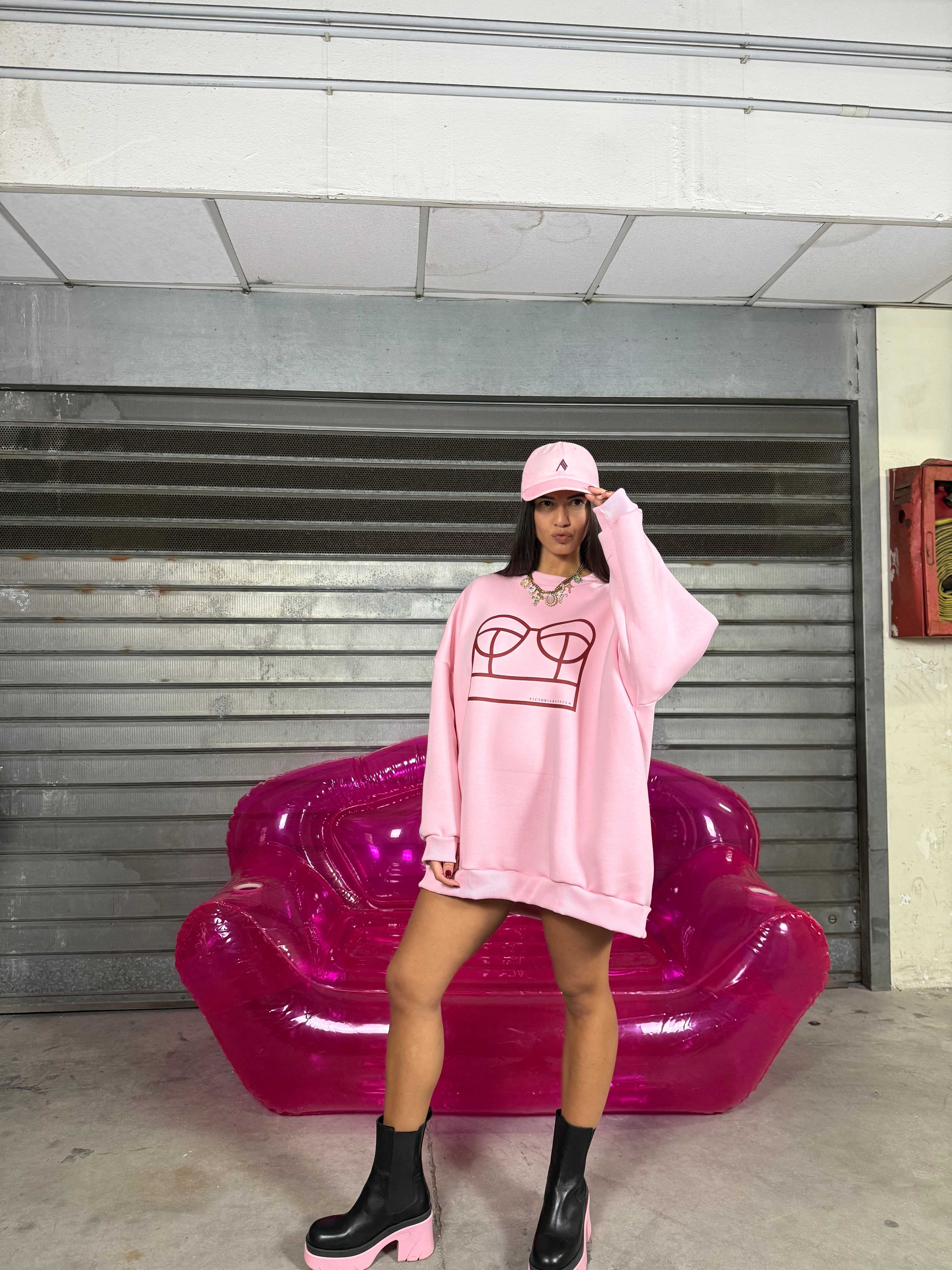 Felpa girocollo, manica lunga, felpata all’interno, con stampa frontale a forma di corsetto