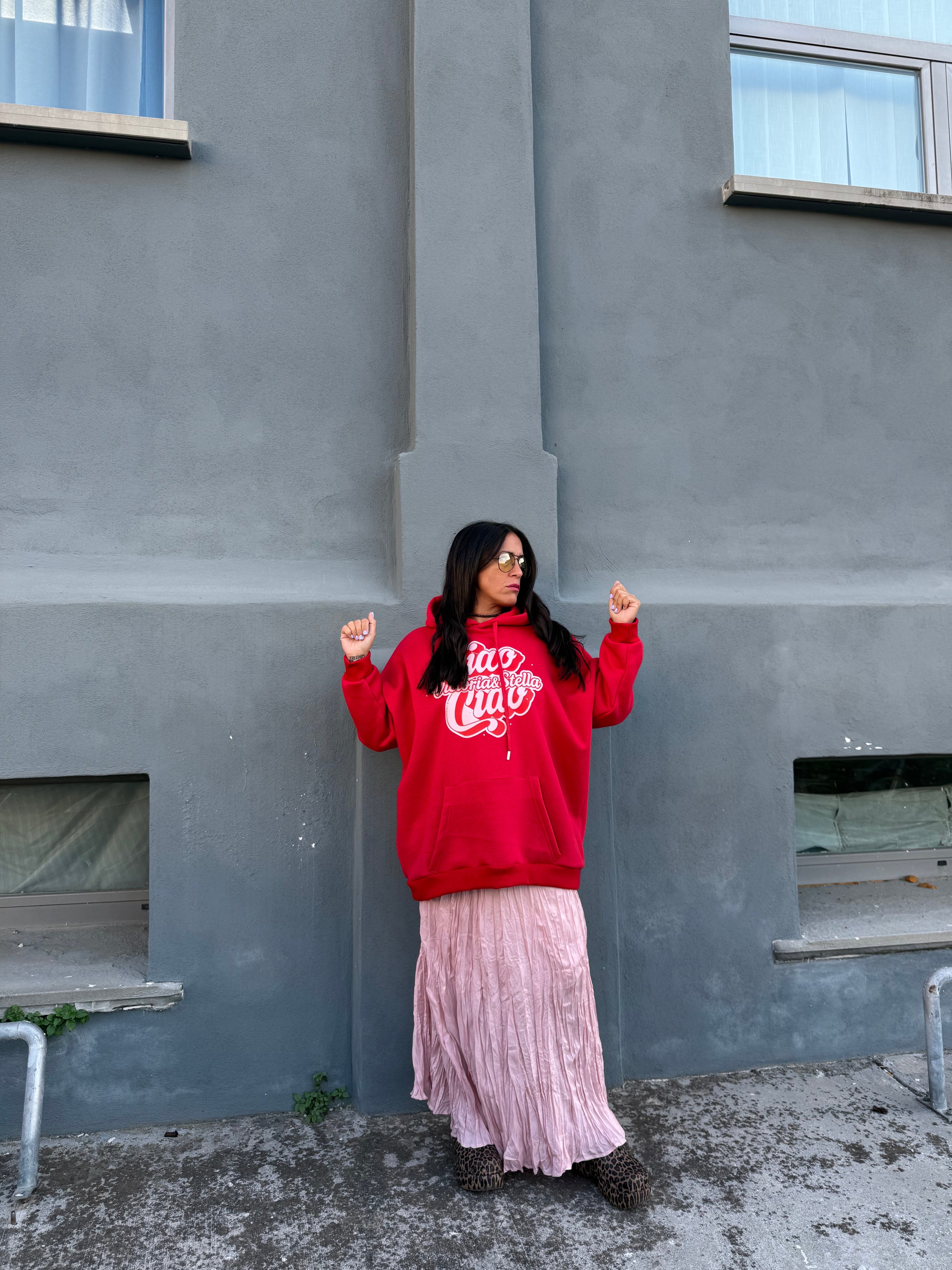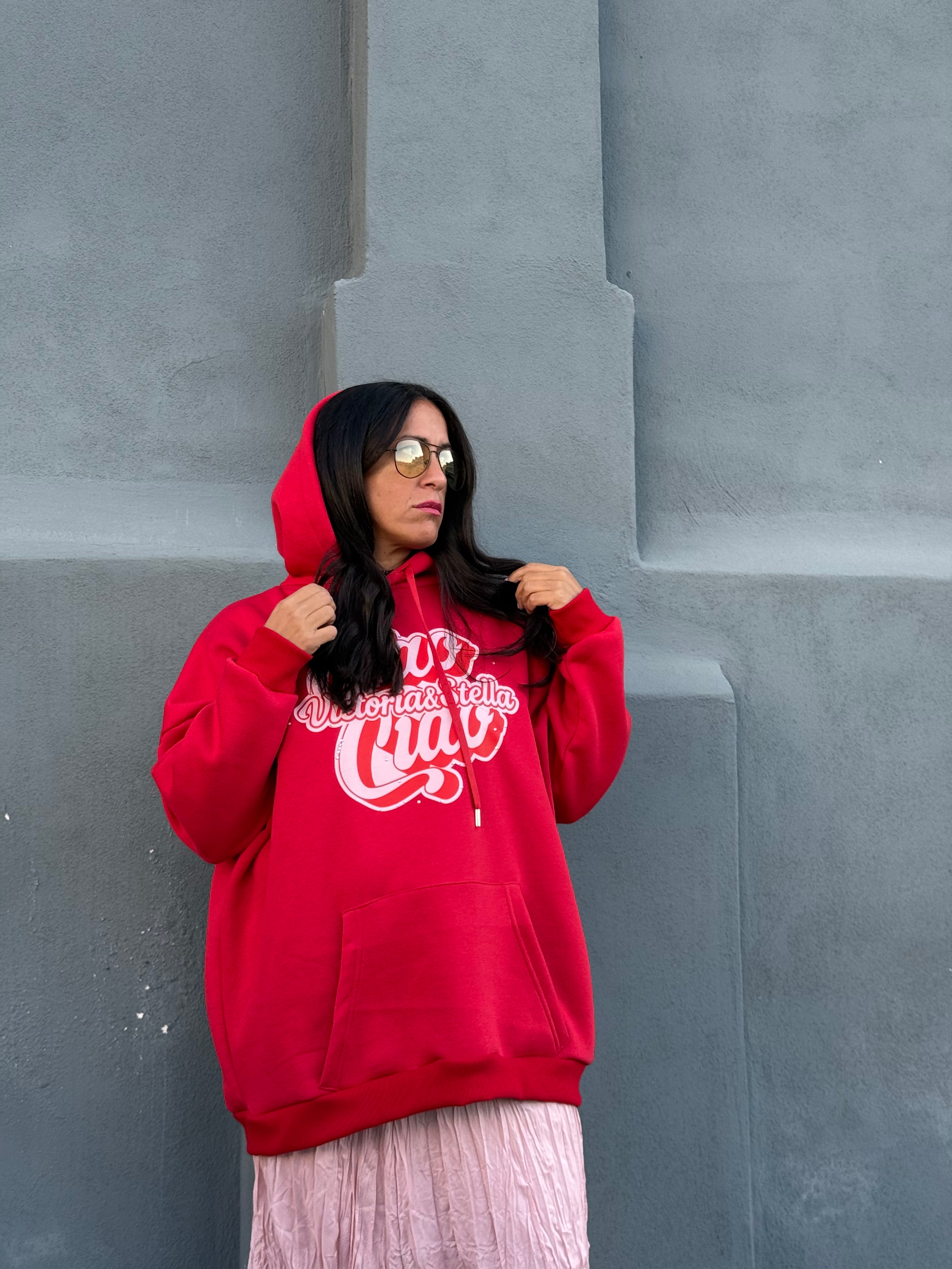 Felpa over in caldo, cotone super felpata all’interno con stampa frontale