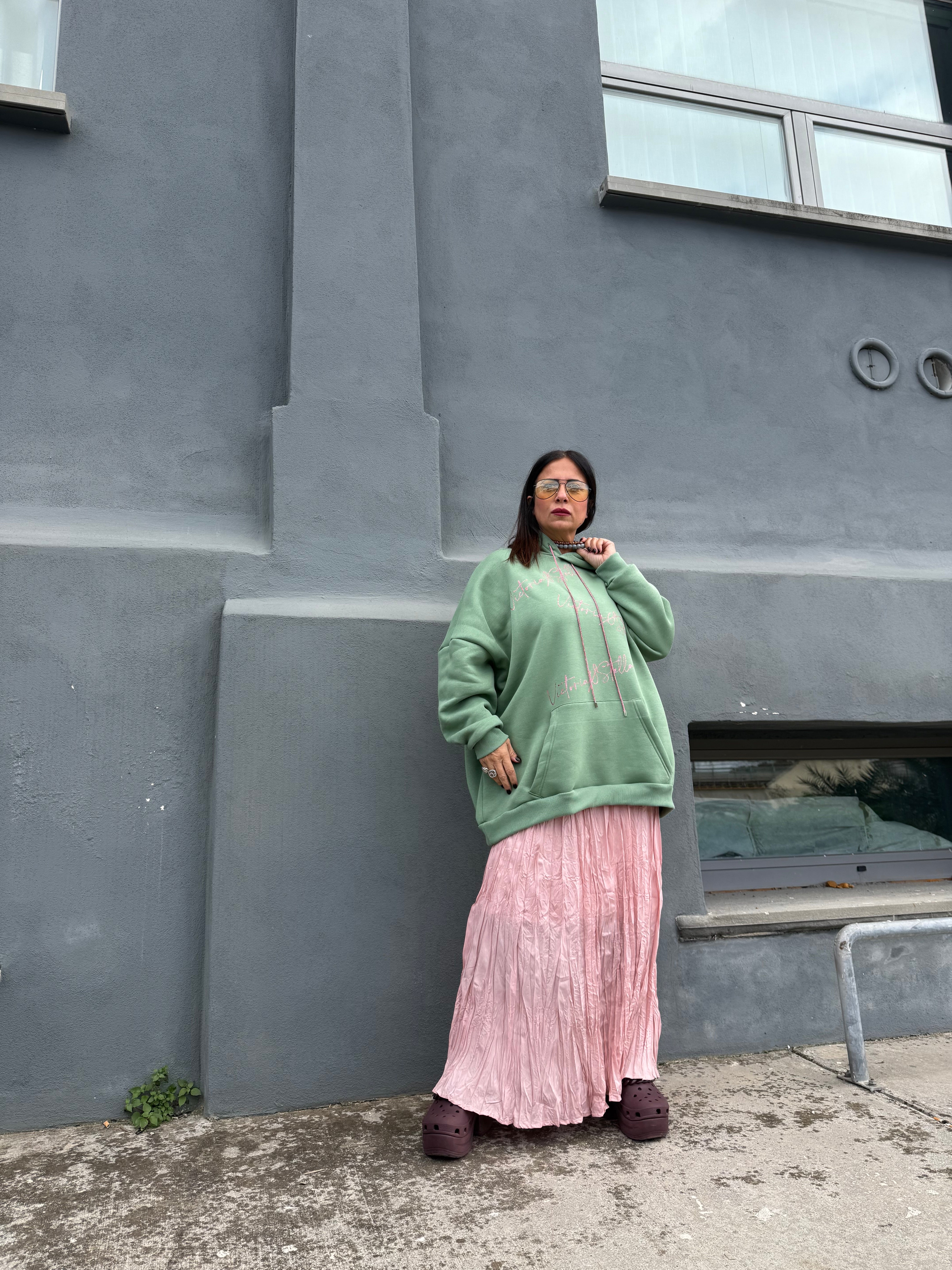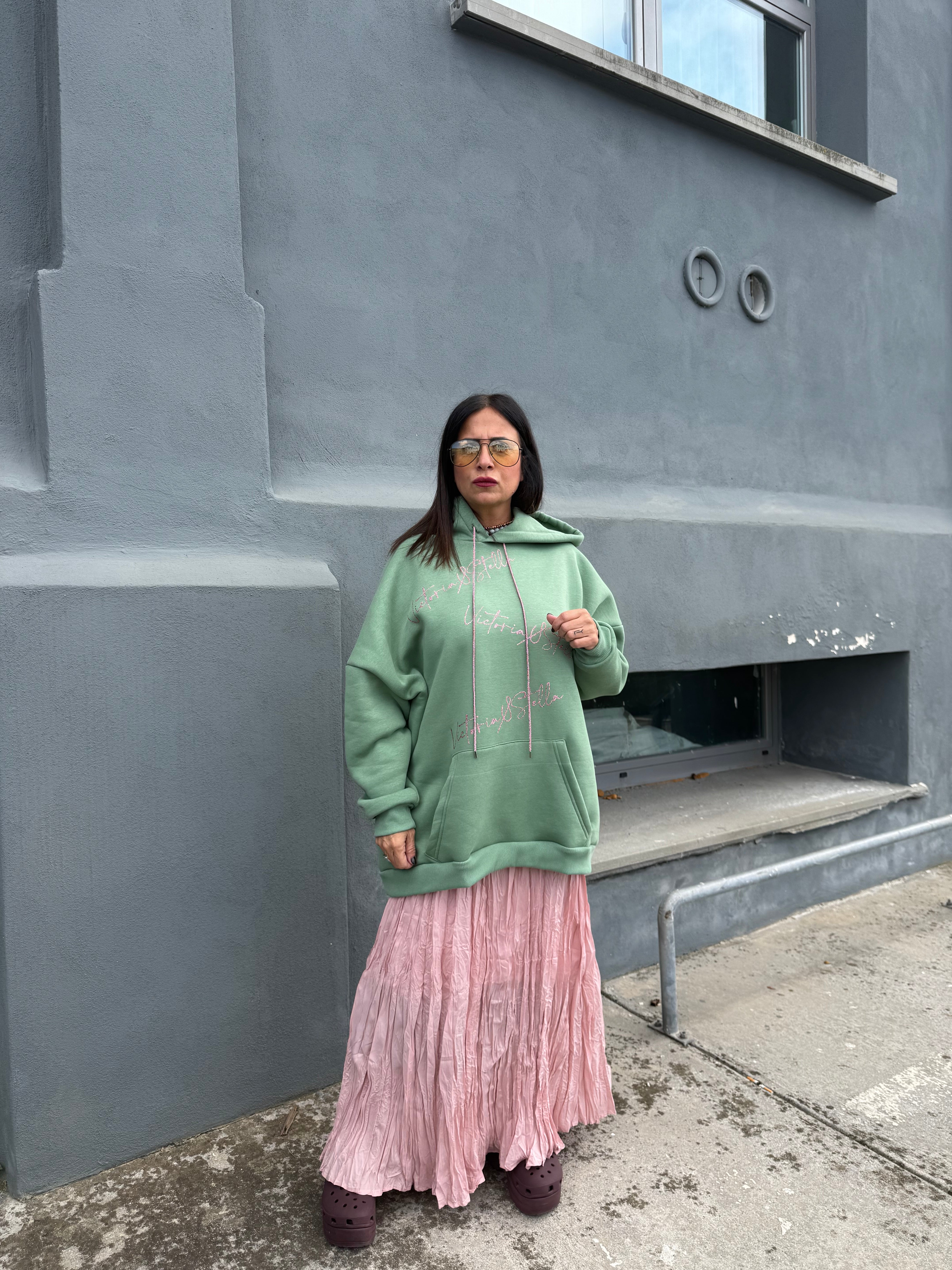 Felpa over in morbido cotone felpato all’interno, perfetta per le giornate più fresche.