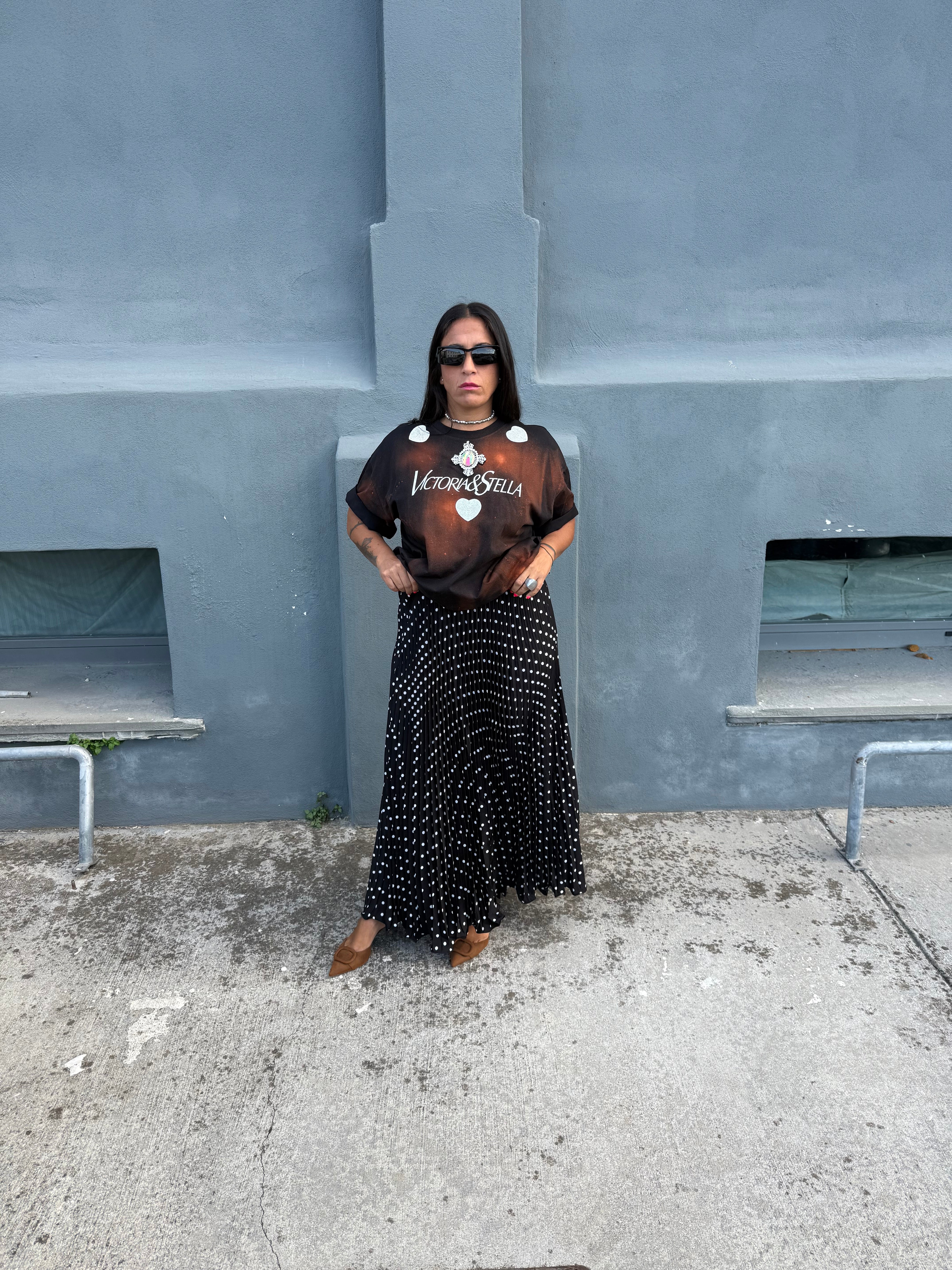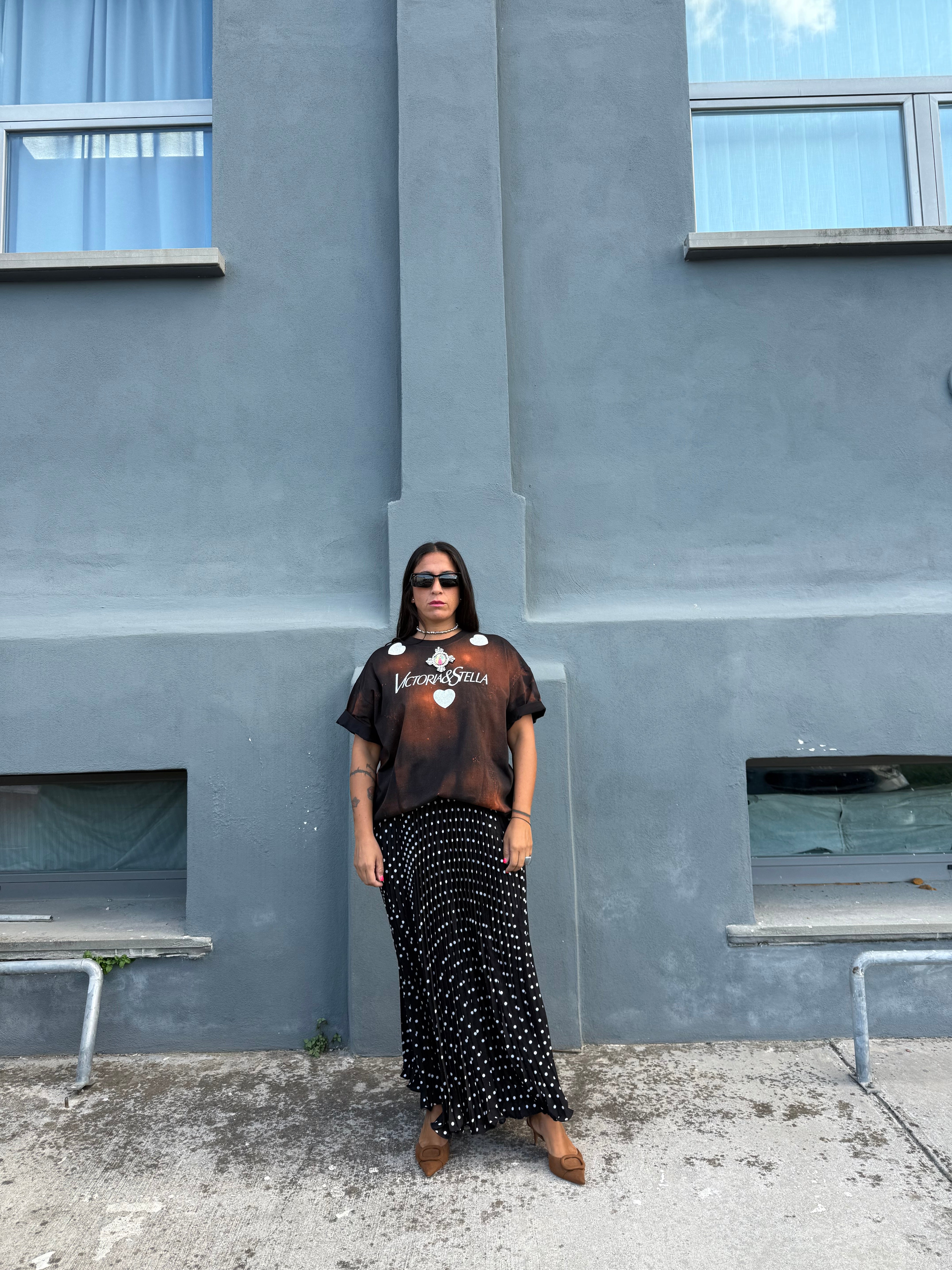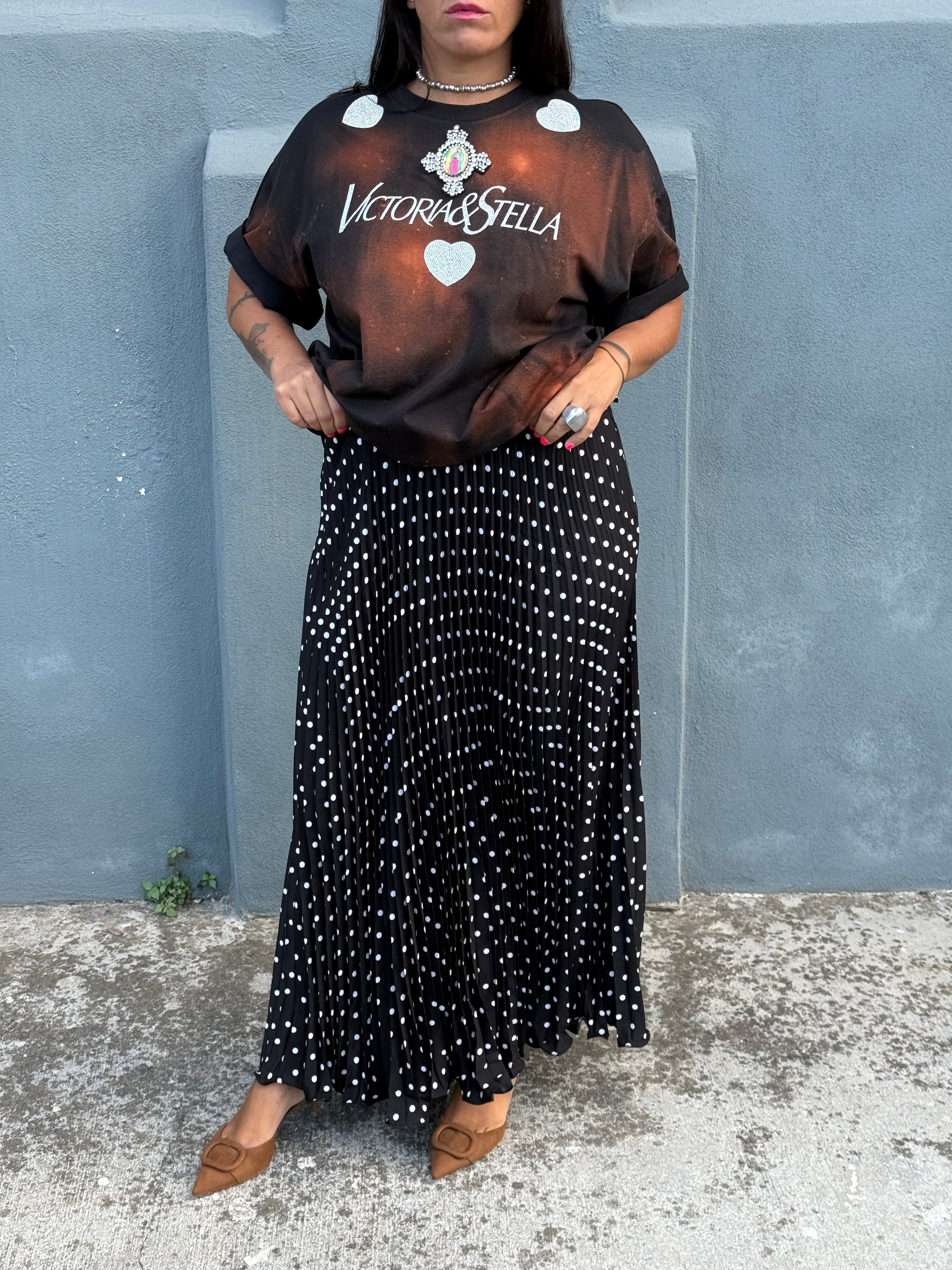 Gonna lunga Plissettata Con fantasia in poins, Non cede molto