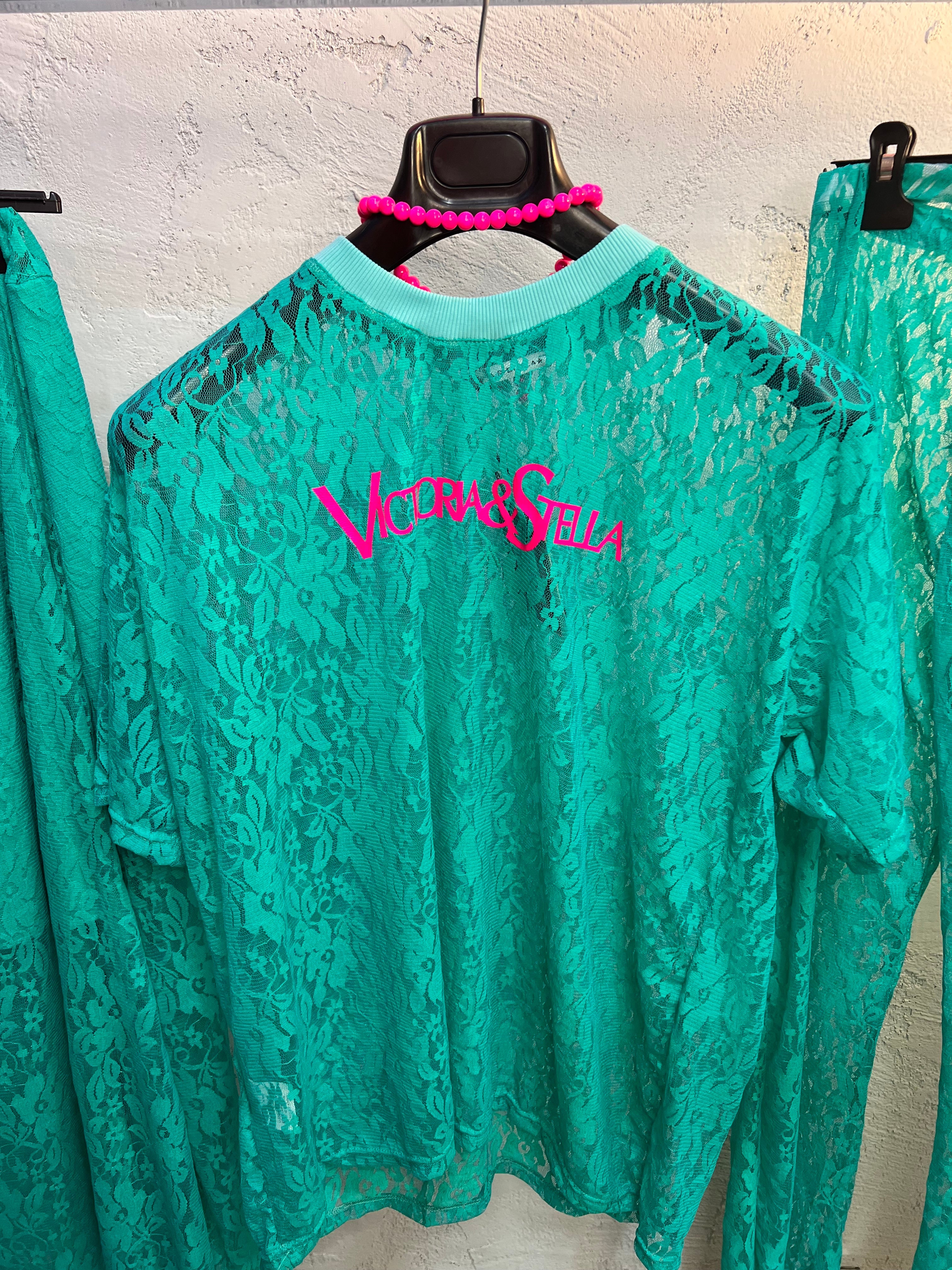 T-shirt in pizzo turchese