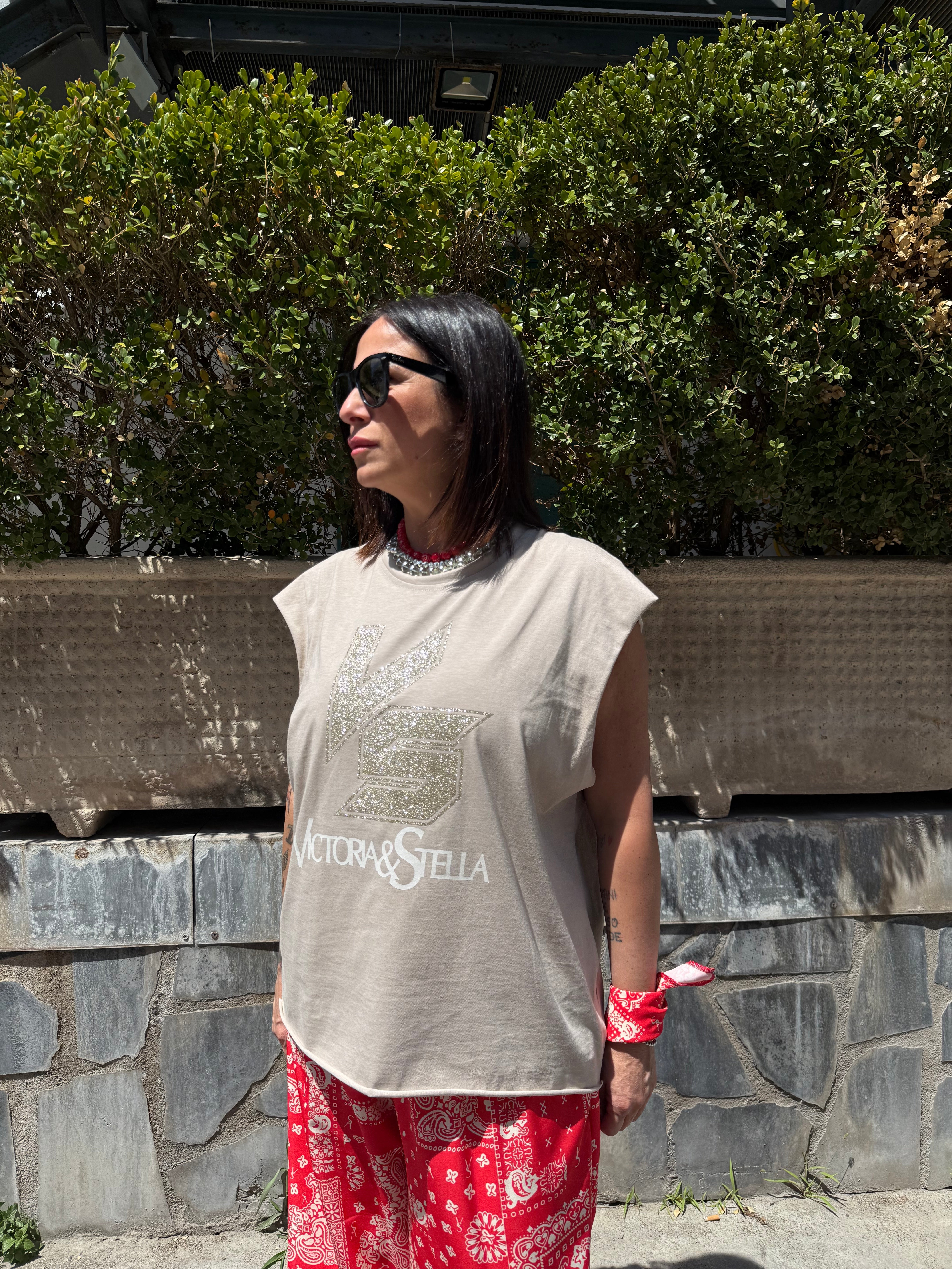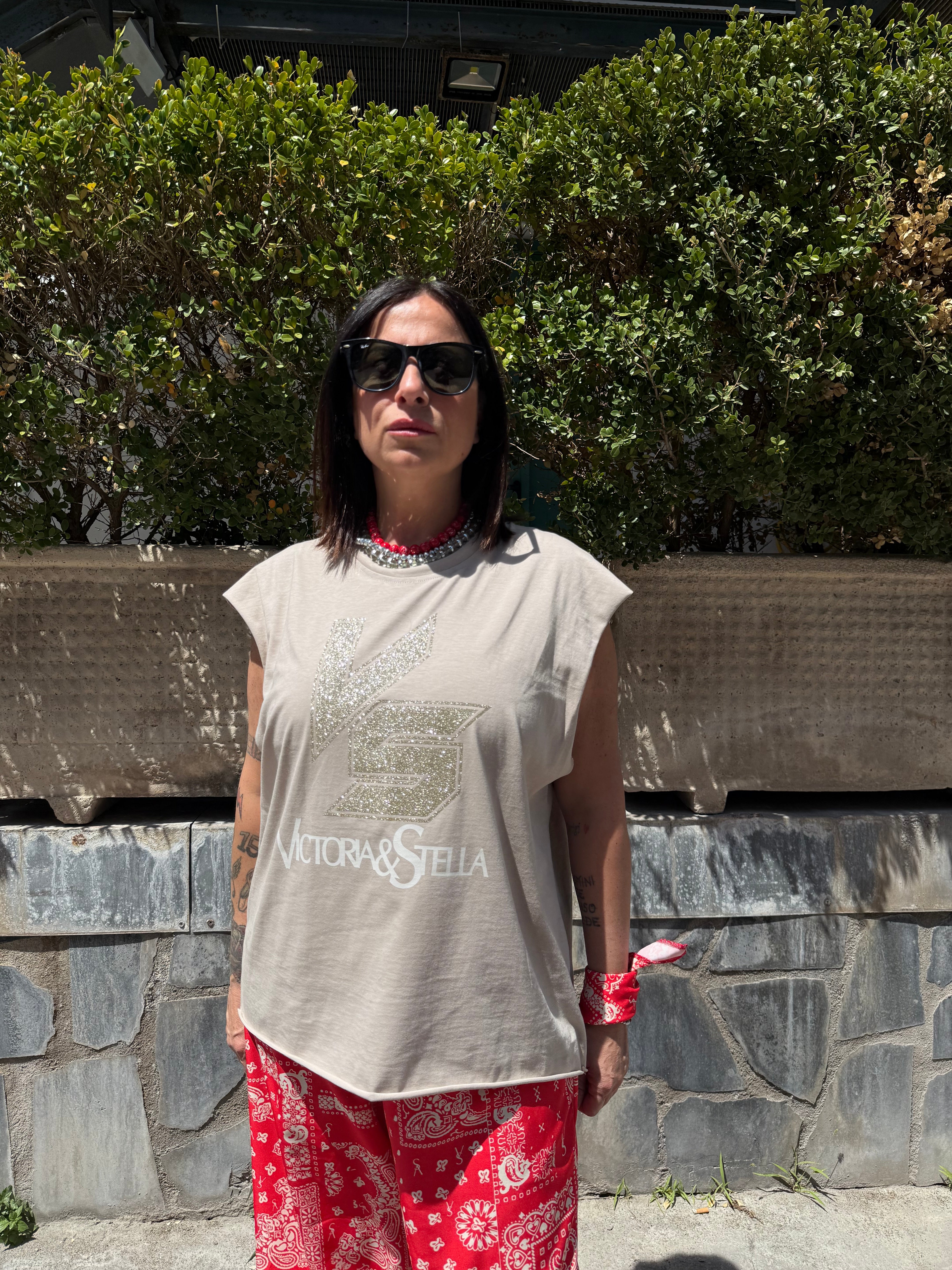 T-shirt 100% cotone con maniche a taglio vivo a giro manica definito, per un’estetica essenziale ma curata. La stampa glitter all over illumina il capo con un tocco di brillantezza, perfetta per chi ama distinguersi anche nei dettagli. Linea semplice, stile deciso.